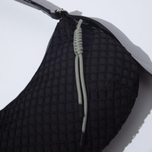 The textured nylon adds depth and a refined finish, while the adjustable strap and technical cord charm bring utility and character, perfect for both urban and casual settings.