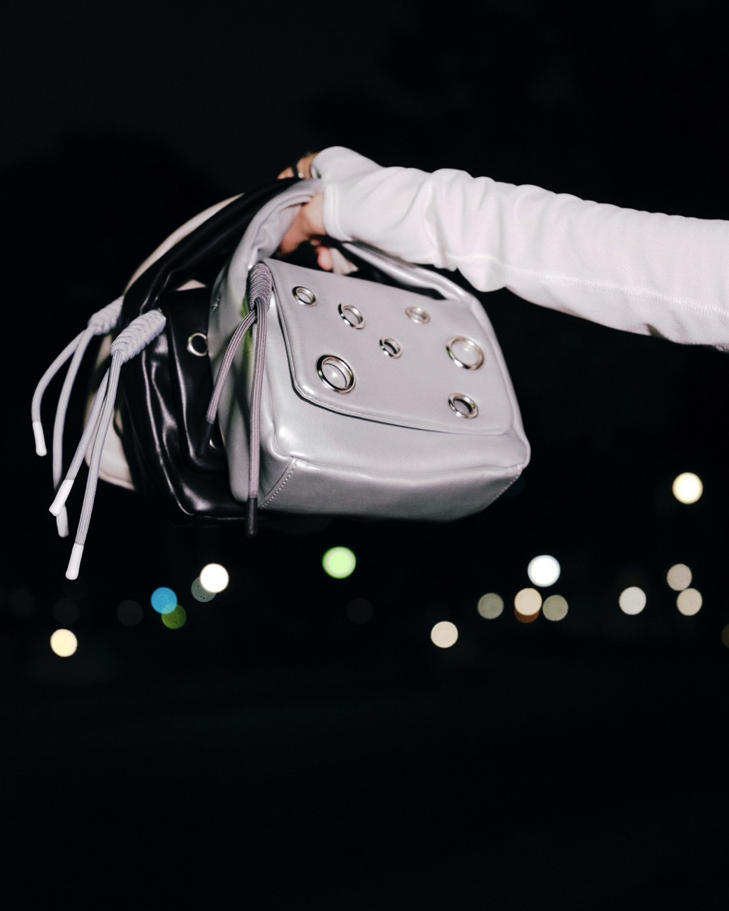 Eyelets of various sizes are struck in various places, giving the bag a luxurious look that can be used as a coordinating accent on its own.