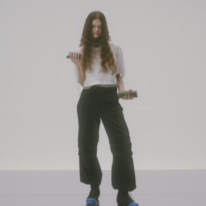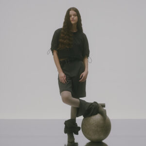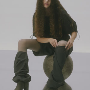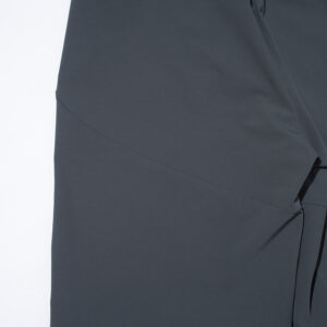 These modular trousers reinterpret utility gear with an architectural, feminine lens. Featuring articulated knees and a clean straight silhouette, detachable lower legs allow conversion from full-length trousers to shorts, adapting seamlessly to climate changes, outdoor activity, and travel.