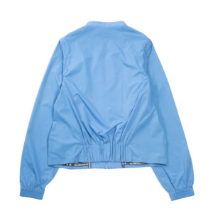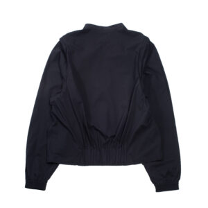The silhouette is standard-sized with semi-drop shoulders and a slightly cropped length, making it easy to style with wide trousers or skirts.