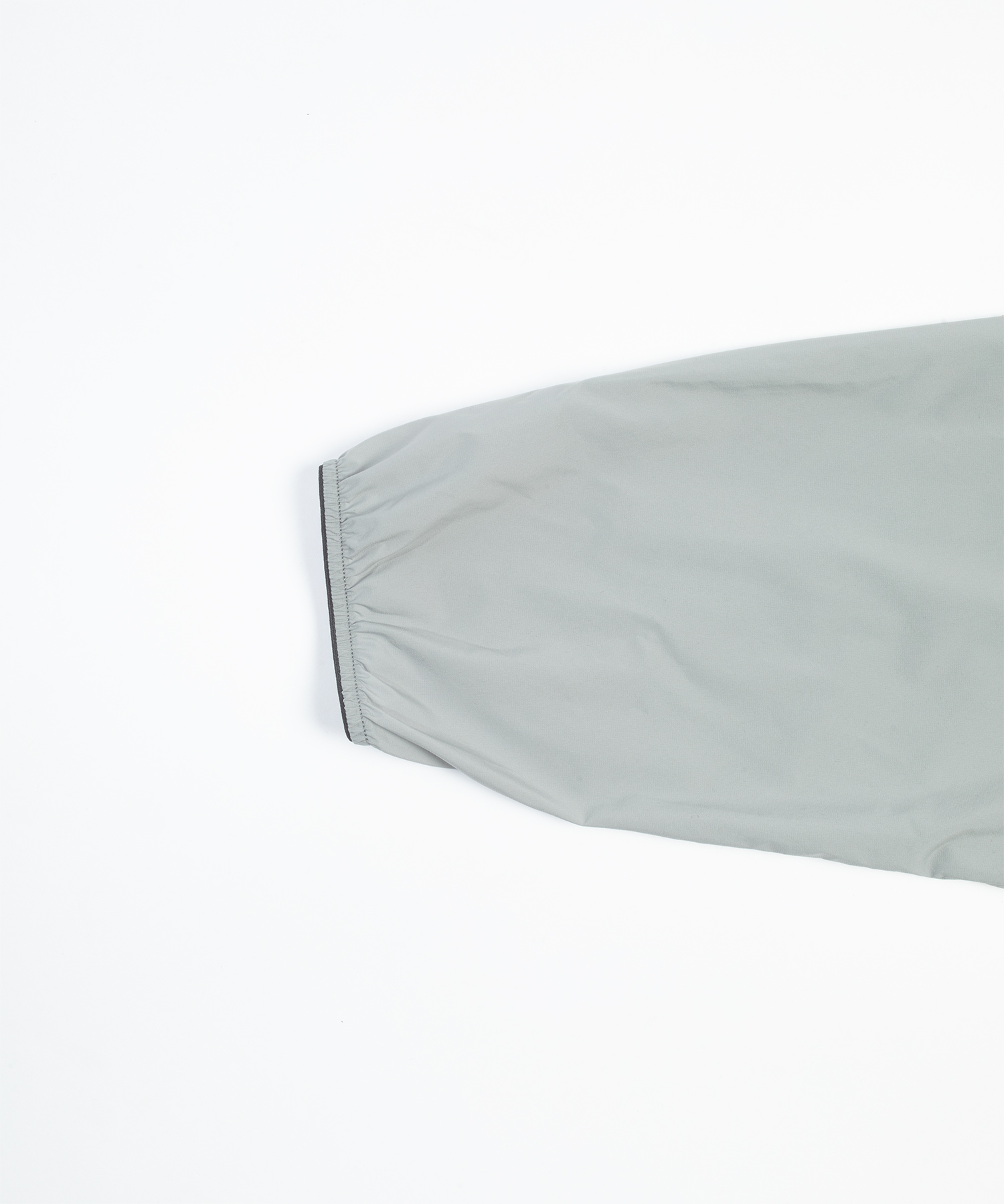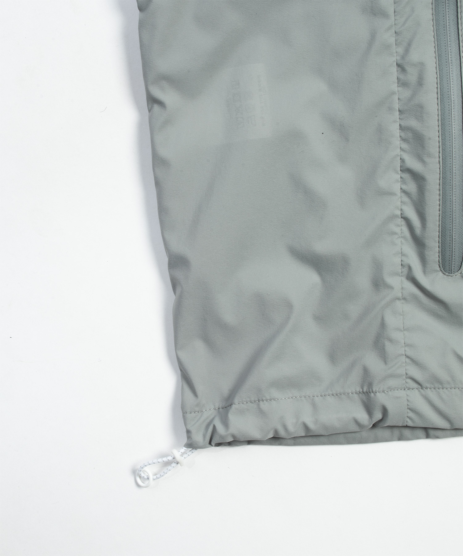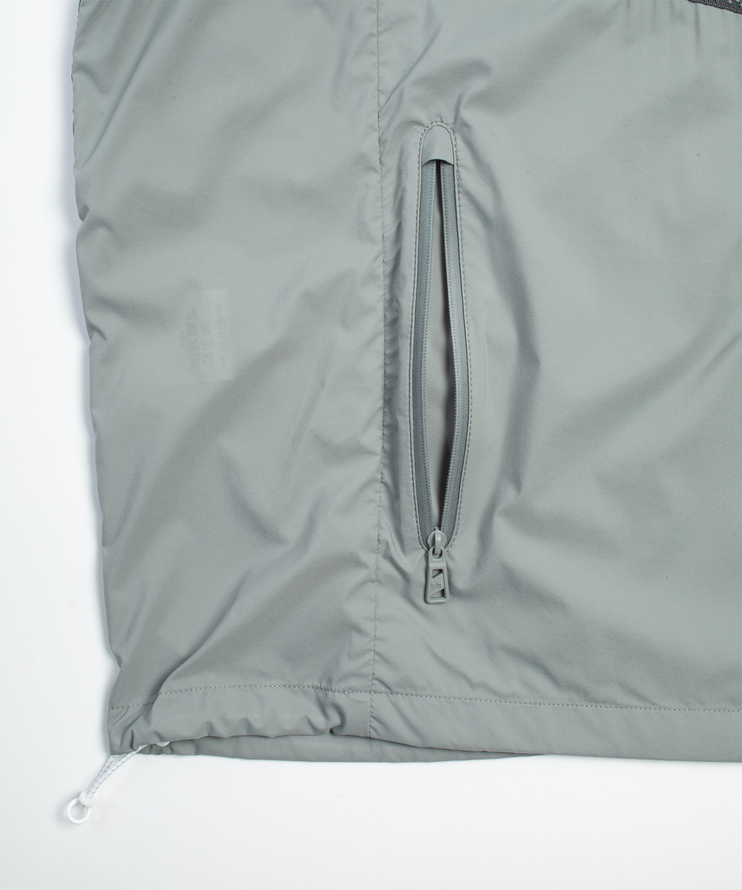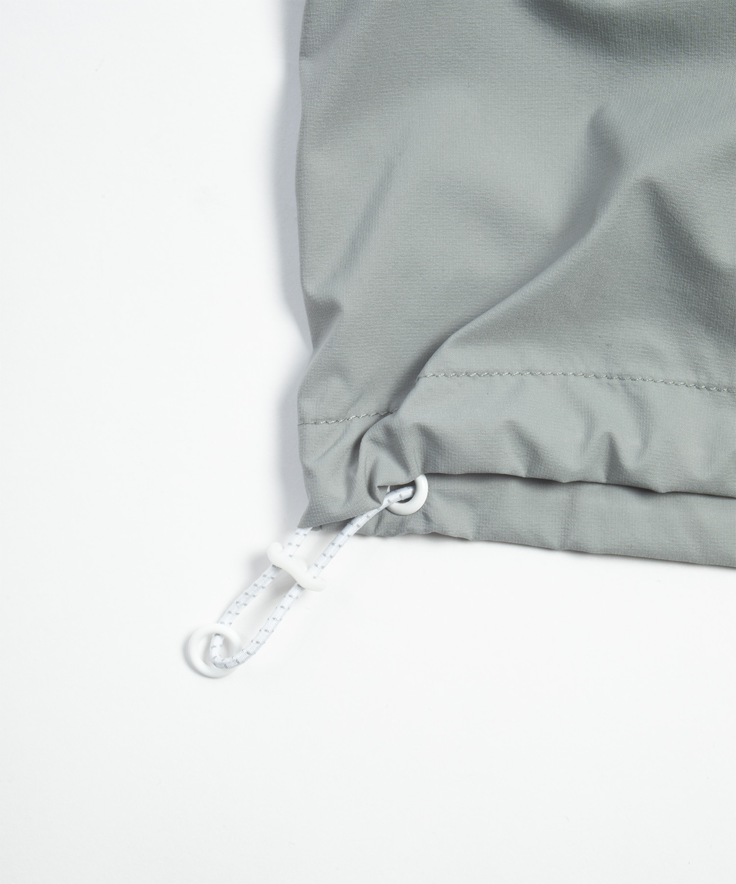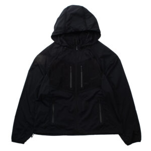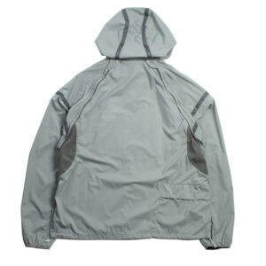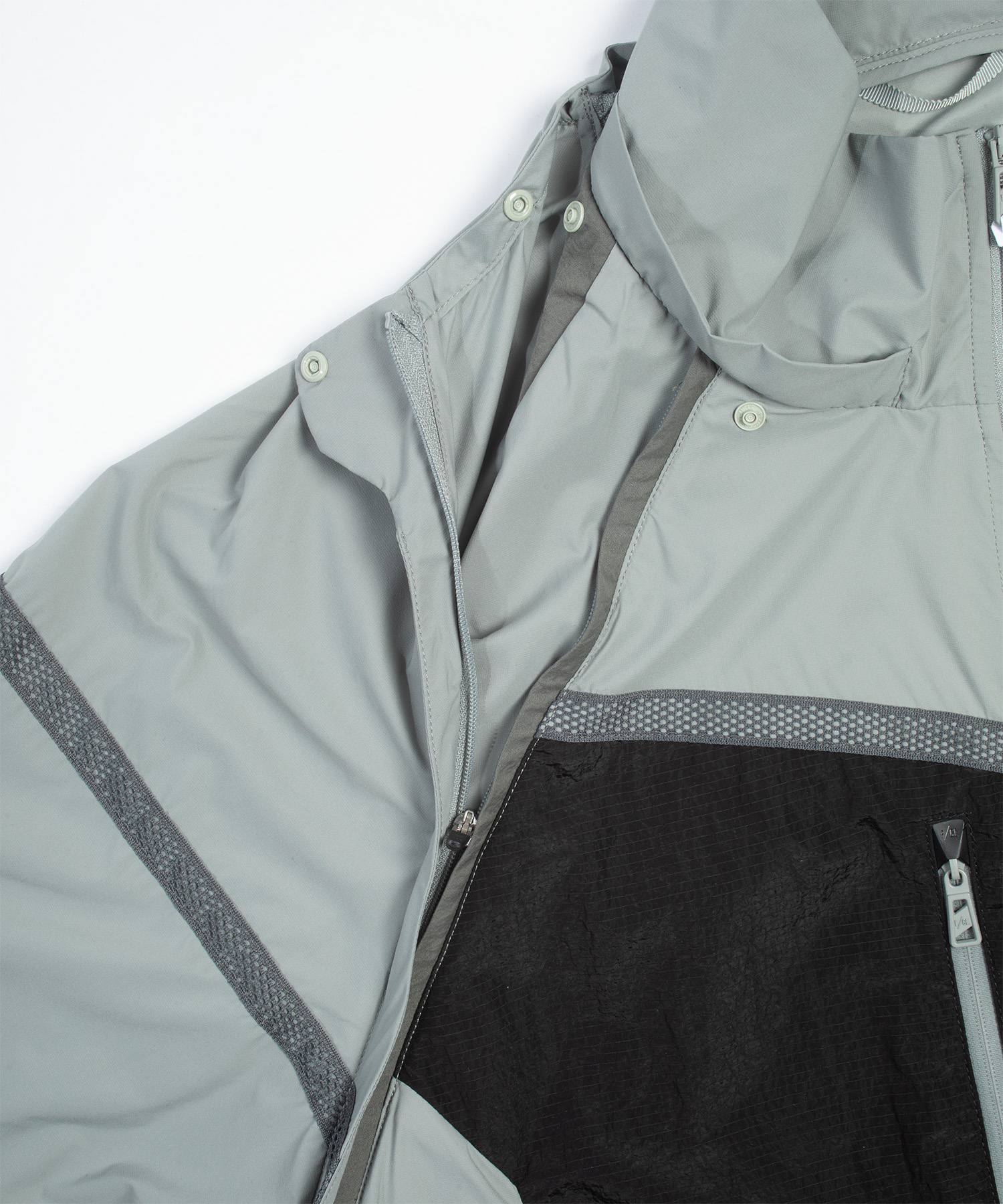 A transform jacket made from ultra water-repellent lightweight nylon. It also features a packable design that can be stored in the rear outer pocket.