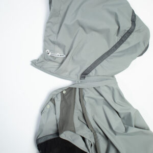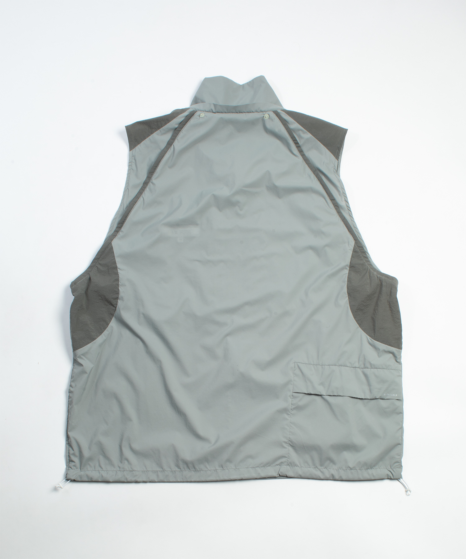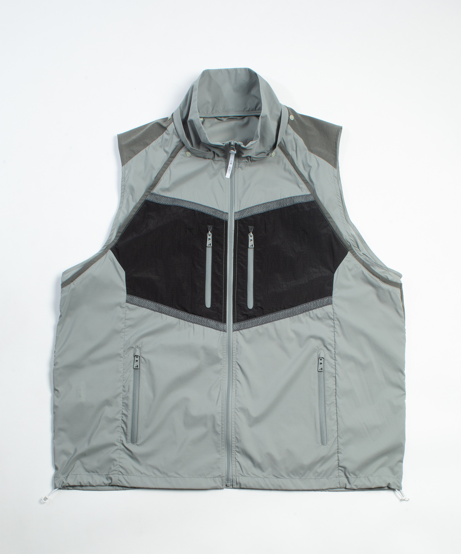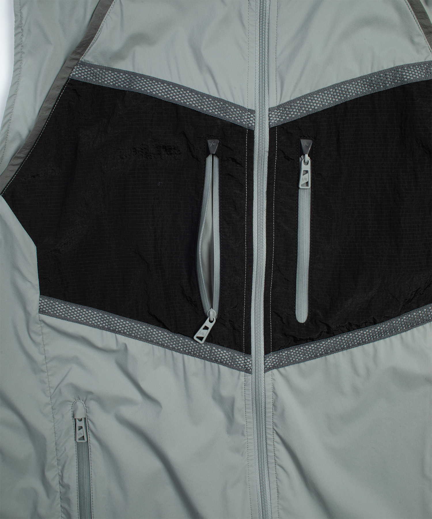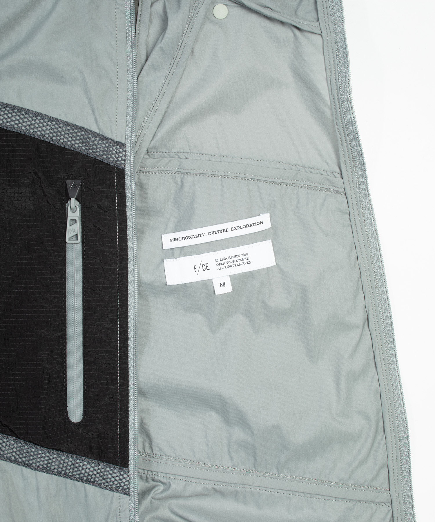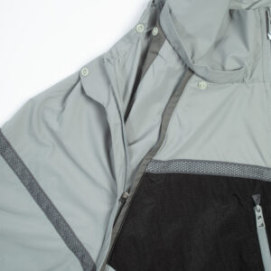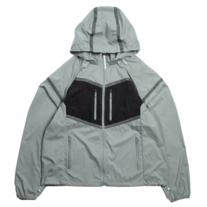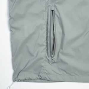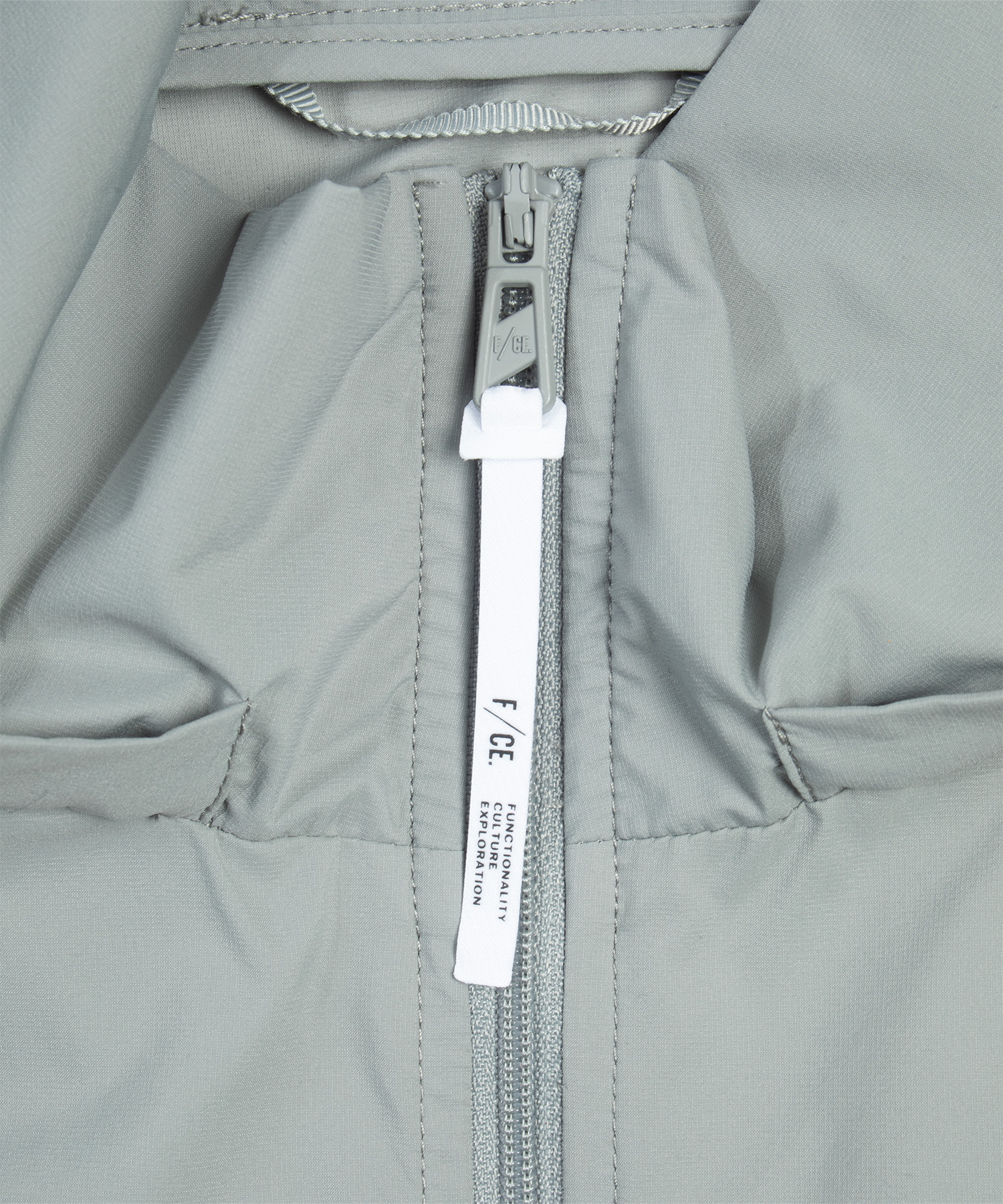 A transform jacket made from ultra water-repellent lightweight nylon. It also features a packable design that can be stored in the rear outer pocket.