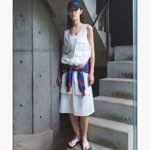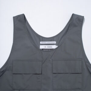 A utility vest crafted from PERTEX® EQUILIBRIUM, a technical fabric favored by F/CE. for its balance of weather resistance and breathability.