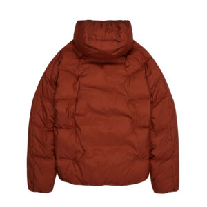 A down jacket featuring an original design where surface stitching and fabric panels gradually fade away. It freely employs various technical apparel techniques, such as shirring around the hood and minimalist cuffs. A tiny metal part symbolizing J.L-A.L is attached to the back.