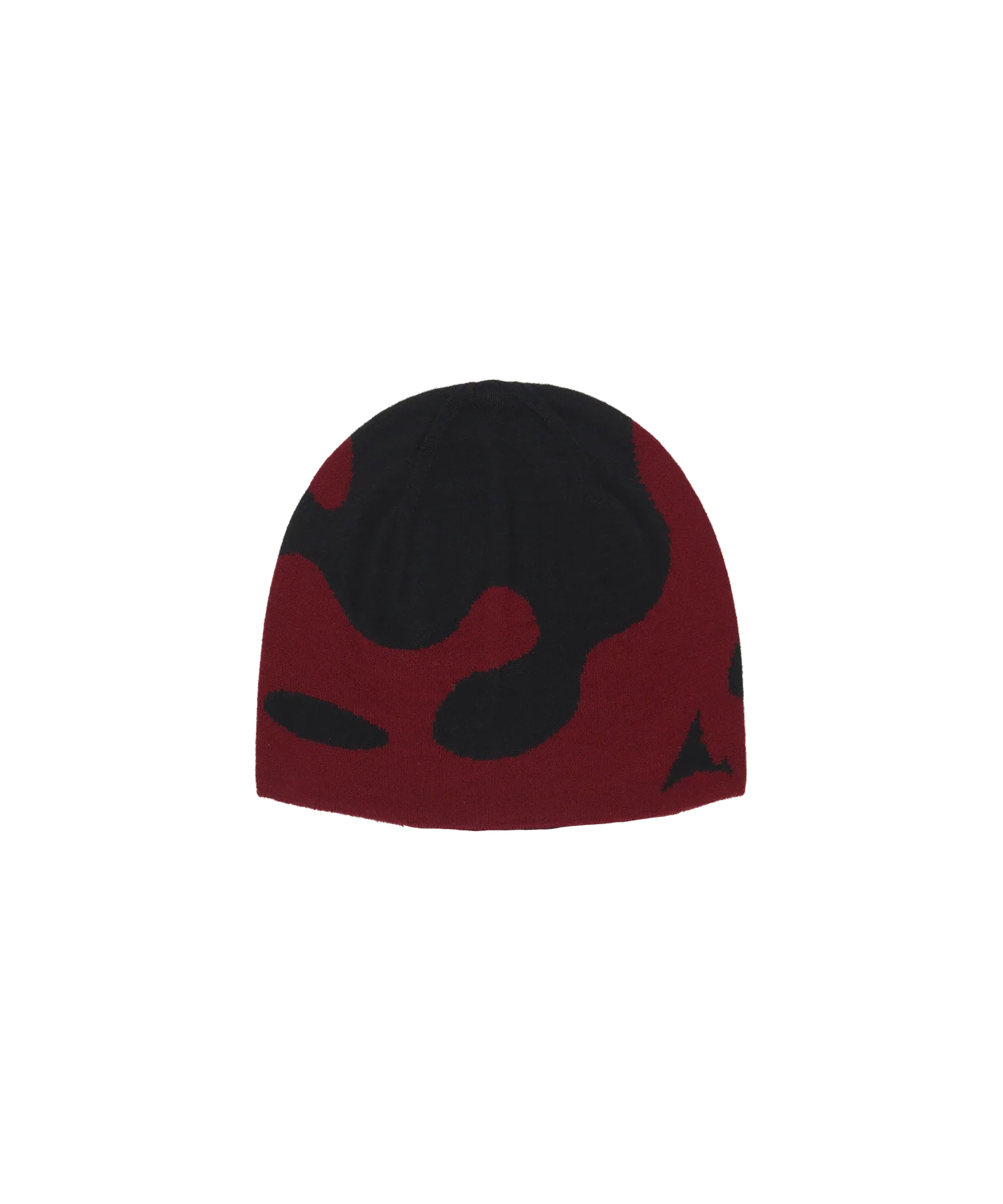 “The Magma Wool Beanie in black color is made from a wool-acrylic blend, offering superior warmth and a soft feel. Contrasting dark red magma color graphic.
