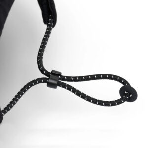 ・Adjustable bungee cord back strap with reflective loops to easily personalize size and fit.