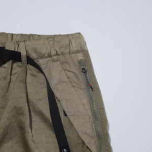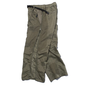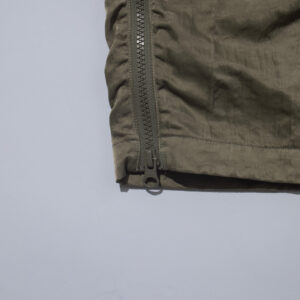 Inspired by ECWCS trousers, the long vertical side zips allow the silhouette to transform when opened?combining adaptability with sculptural design.