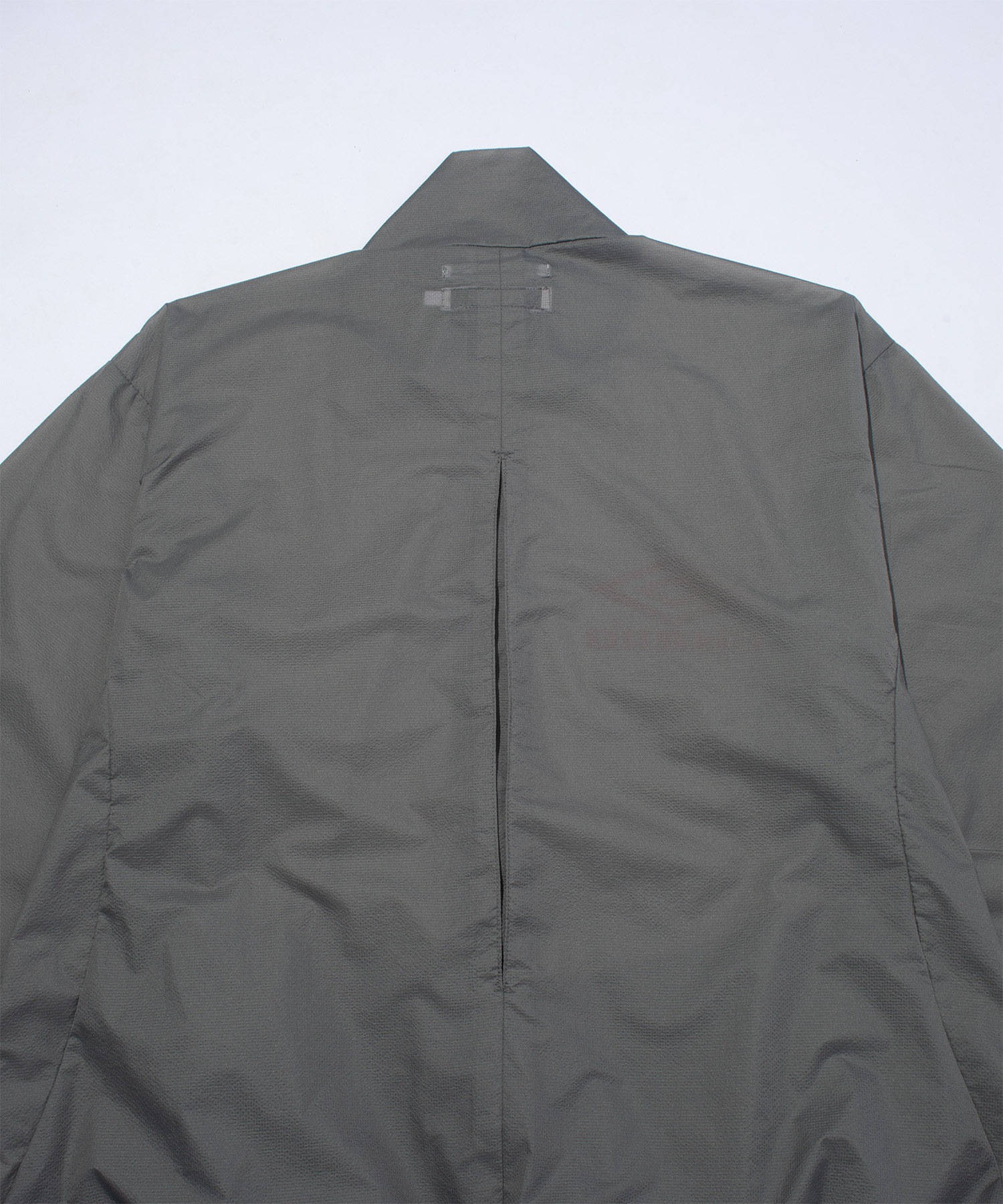 This sculptural track jacket draws inspiration from the iron curves of Art Nouveau architecture. Asymmetrical patternwork and curved panels give the silhouette a fluid, transformative quality that shifts with the wearer’s motion. Crafted from a lightweight, breathable, and quick-drying material to transition effortlessly between city and sport.