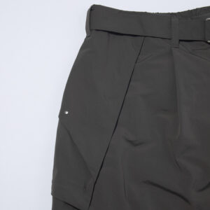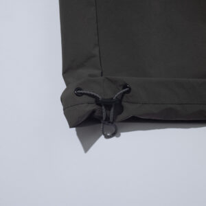 Crafted from high-density nylon taffeta made with composite false-twist yarn (Compaction yarn), the fabric features a naturally wrinkled surface and compact texture achieved through BAZERO processing, which utilizes yarn shrinkage.