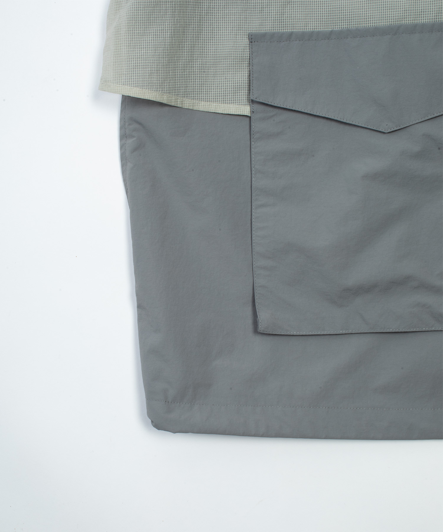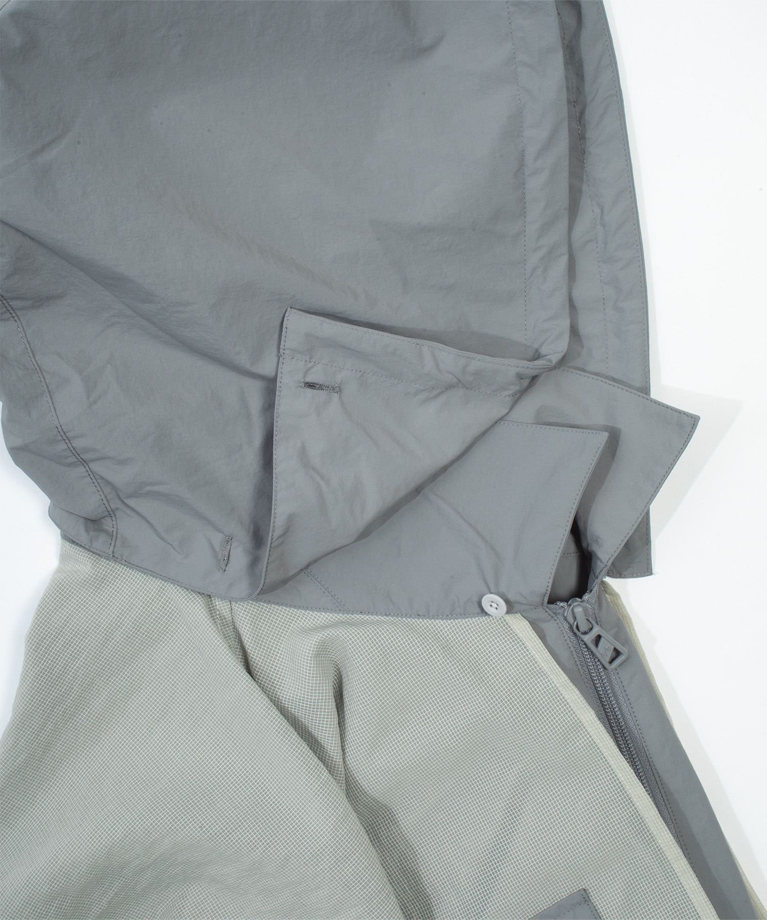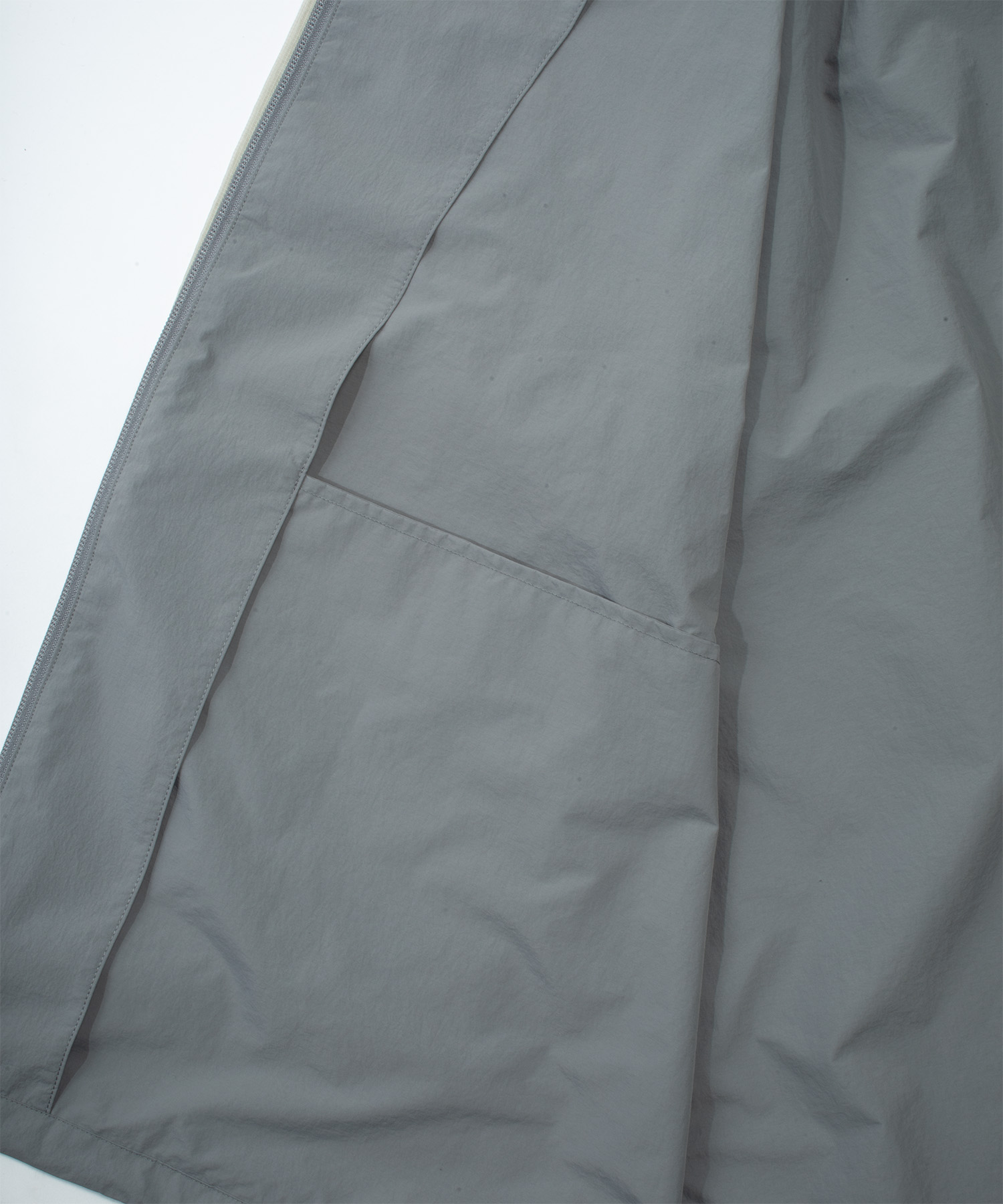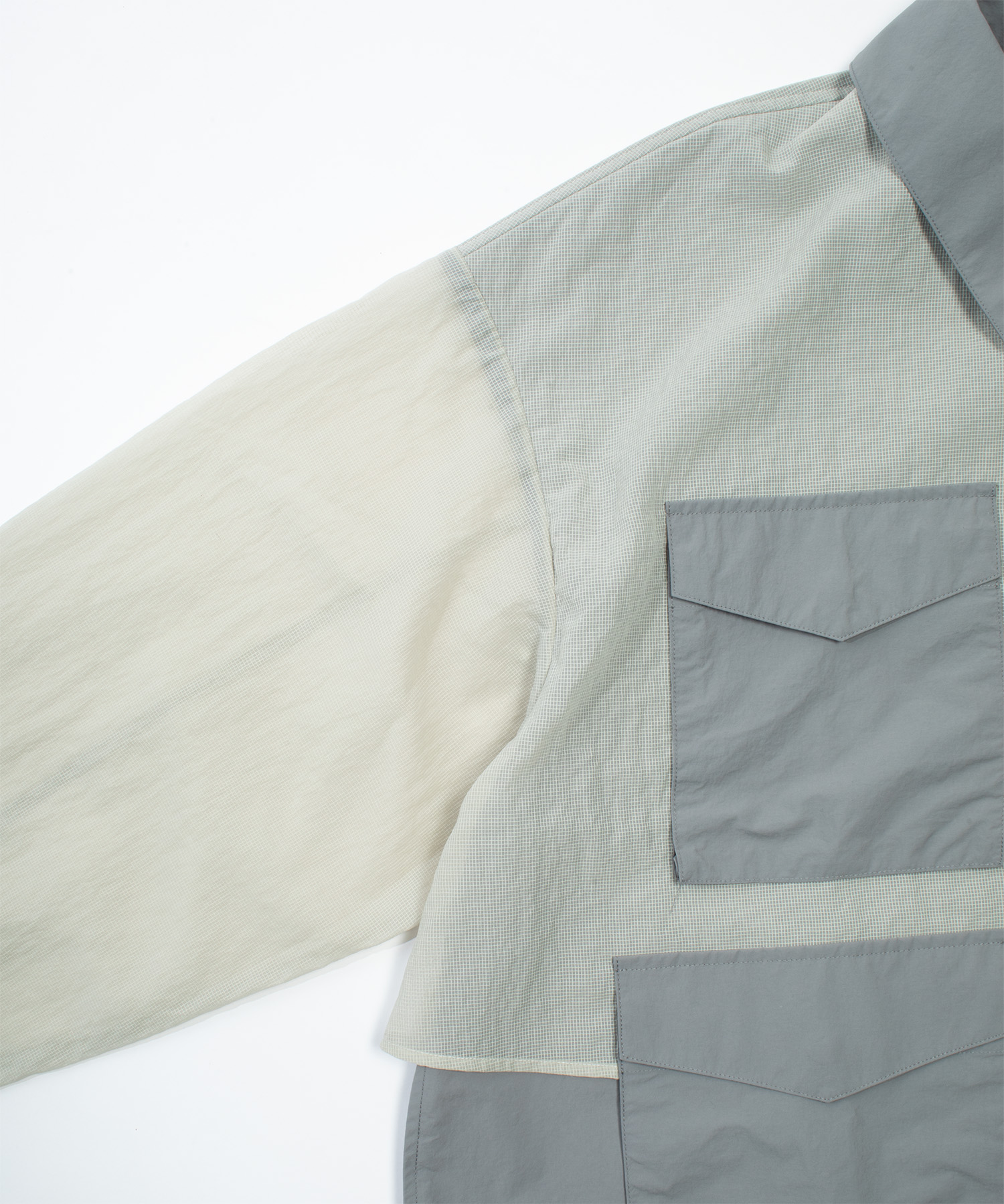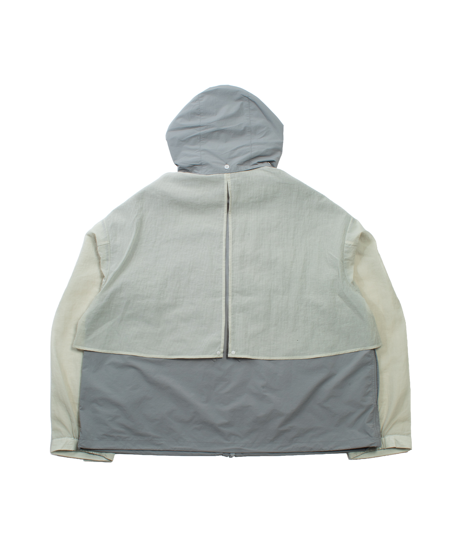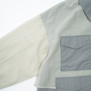A lightweight technical jacket crafted by combining wrinkle-textured nylon with ripstop mesh panels.