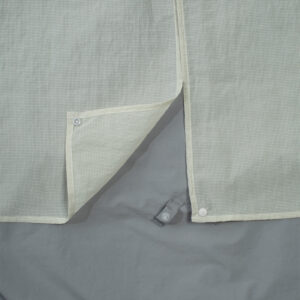 The outer fabric is treated with a fluorine-free water-repellent finish, offering environmental consideration and functionality in unpredictable weather.