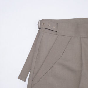 Side adjusters made of the same fabric eliminate the need for a belt, blending ease and elegance into one modern garment.