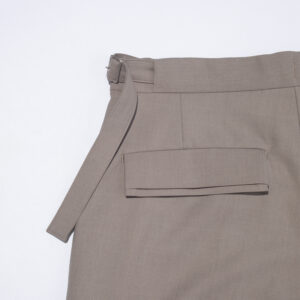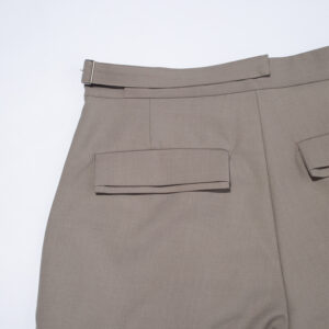 A central front stitch creates a clean, structured silhouette, while reinforced flap and waistband details add a tailored finish.