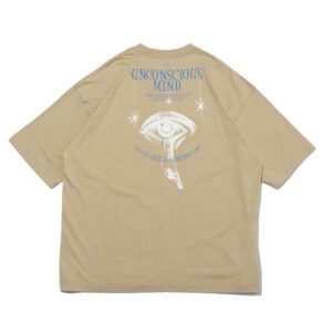 Post-print processing gives it a vintage band tee texture, and the use of recycled cotton—with its irregular slubs and texture—enhances its aged aesthetic.