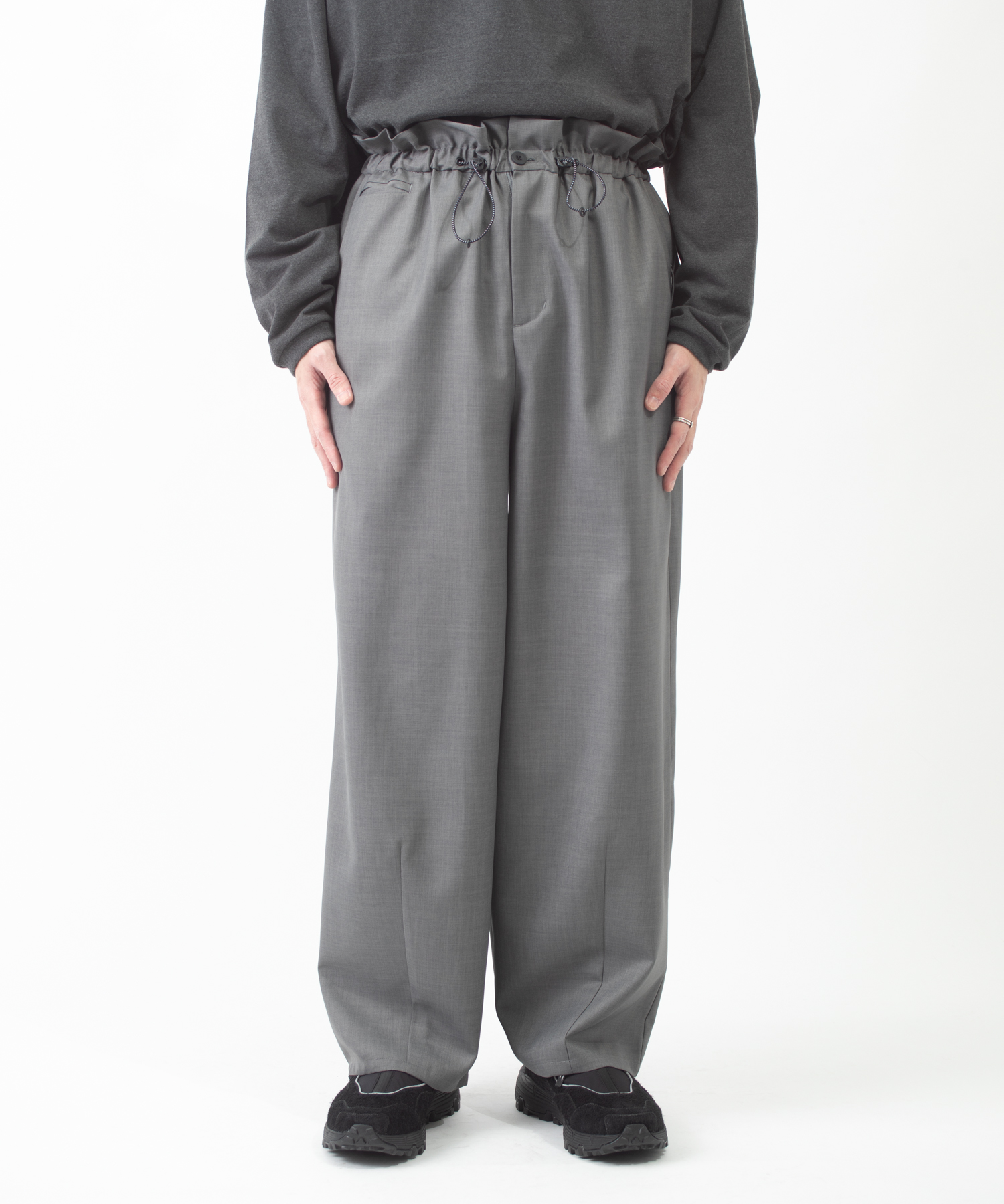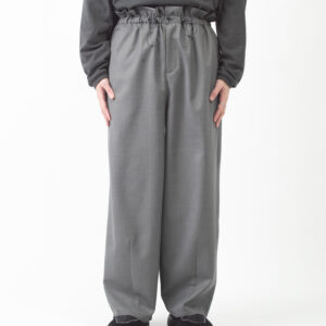 High-waisted wide pants made from a tweed-like material created by twisting 170 denier polyester to mimic the texture of carded wool. These pants are lightweight, comfortable to wear, and have a soft feel, offering a polished look. The design has been updated with fine details such as pockets, evolving the wide pants from the previous version.