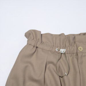 The addition of darted hems creates volume and shape, while the beltless waist with elastic and drawcord ensures easy adjustability.